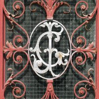 Initialen finden sich auch in einem Schmiede- bzw. Gusseisengitter an einem
